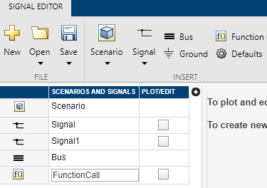 Можно также вставить сигналы, щелкнув тип сигнала в разделе Вставить (Insert) или нажав кнопку Разделение сигнала (Signal split), чтобы создать сигнал с помощью обозначений сигнала.