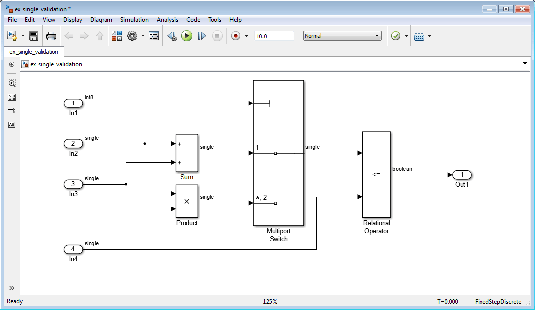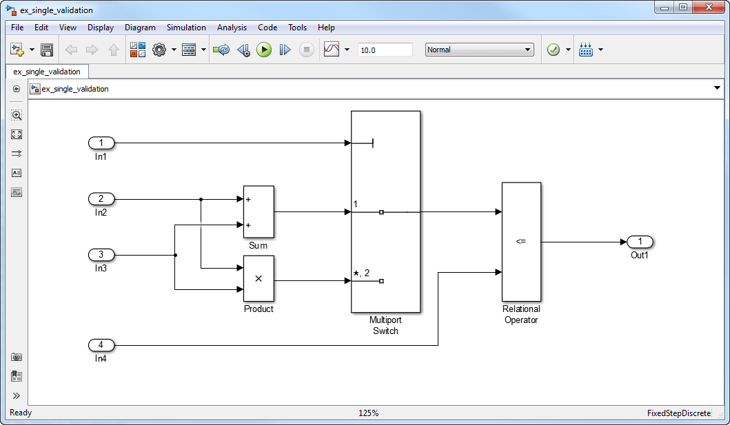 Откройте окно ex_single_validation модель. В командной строке MATLAB ® введите: