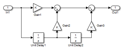 Предположим, что размер входного сигнала этого фильтра изменяется от 4 до 1 во время моделирования. Неоднозначно, когда и как состояния блоков единичной задержки должны адаптироваться от 4 до 1 для продолжения обработки входных данных. Для обеспечения согласованности оба блока Unit Delay должны синхронно изменять свое состояние. Чтобы предотвратить неоднозначность, Simulink обычно запрещает блоки, число состояний которых зависит от размеров входного сигнала в контекстах, где размеры сигнала изменяются в любой точке во время выполнения.