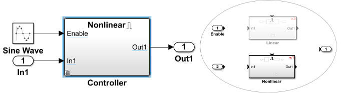 Блок подсистемы, затем другой блок подсистемы (Nonlinear) в блоке Variant Subsystem также должна быть Enable Subsystem.