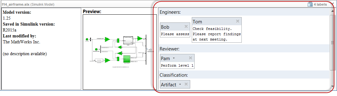 При выборе файла в представлении проекта «Файлы» метки файла отображаются в виде редактора меток.