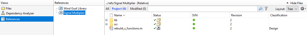 В дереве «Ссылки» выберите требуемую ссылку на проект.