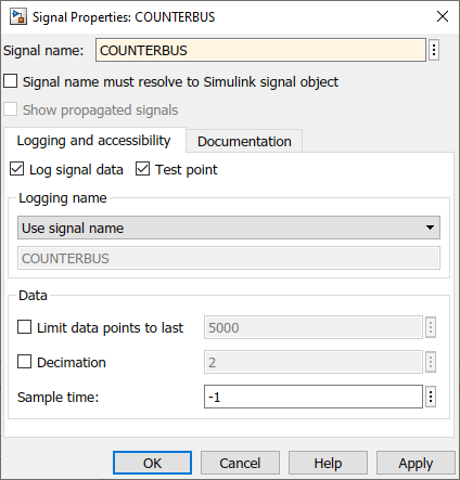 На вкладке Моделирование (Simulation) щелкните Параметры модели (Model Settings). Затем щелкните Configure Signals to Log (Настройка сигналов для регистрации).