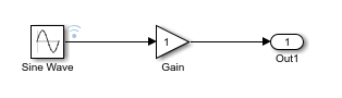 По умолчанию Simulink Editor отображает индикатор на каждом сигнале, помеченном для регистрации. Например, эта модель регистрирует выходной сигнал блока синусоидальной волны.