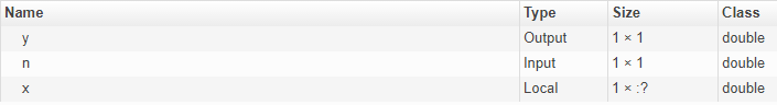 Можно определить, является массив фиксированным размером или переменным размером, посмотрев на столбец Размер (Size) вкладки Переменные (Variables) в отчете о функциях MATLAB.