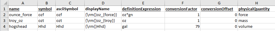Сначала создайте электронную таблицу Excel, следуя инструкциям в разделе Формат электронной таблицы пользовательских единиц измерения. Используйте определения единиц измерения, по одному в строке, например: