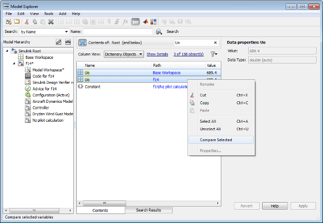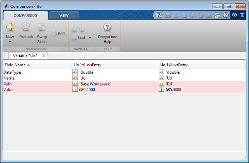 Можно сравнить повторяющиеся переменные, которые хранятся в одной рабочей области или в разных рабочих областях. Например, можно сравнить переменную, хранящуюся в базовой рабочей области, с ее дубликатом, который хранится в рабочей области модели.