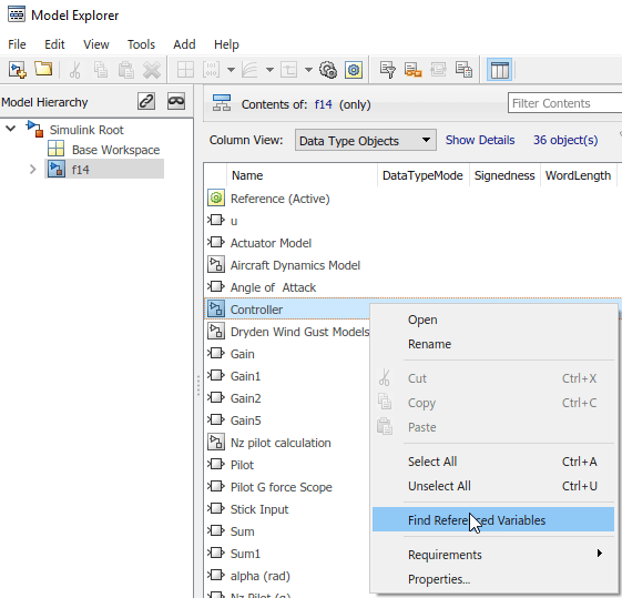 В редакторе Simulink ® щелкните правой кнопкой мыши блок, подсистему или холст и выберите пункт меню «Найти переменные, на которые имеются ссылки». Щелчок на холсте возвращает результаты для всей модели.