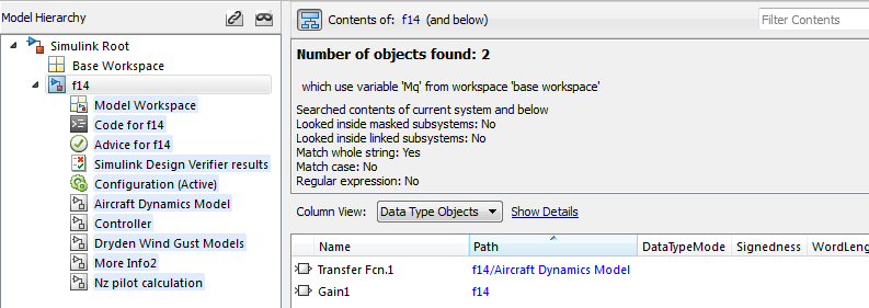 Обозреватель моделей | Simulink.findVars