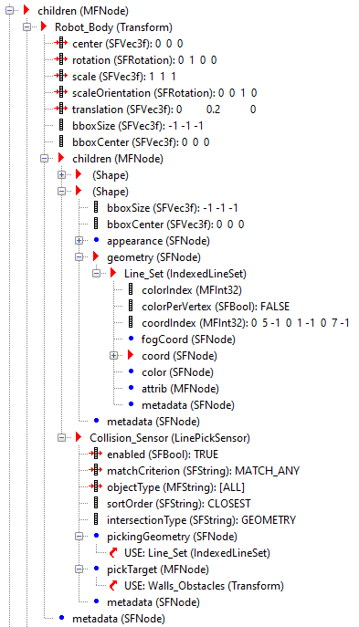 Robot_Body узел имеет Line_Set узел как один из его нижестоящих элементов. Line_Set узел определяет геометрию комплектации для датчика.