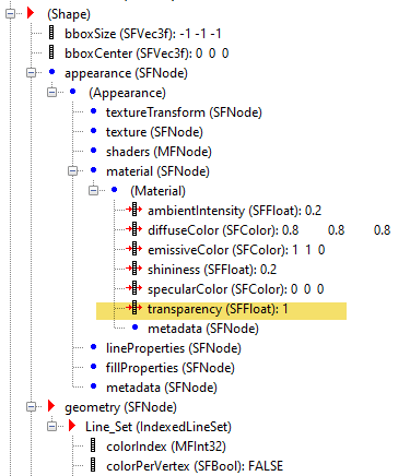 Геометрию комплектации, используемую для датчика комплектации, можно сделать невидимой в виртуальном мире. Для геометрии комплектации в ее Material узел, установите Transparency свойство для 1. Например, в vrcollisions виртуальный мир, для Collision_Sensor узел геометрии комплектации (Line_Set), в Materials узел, измените Transparency свойство для 1.