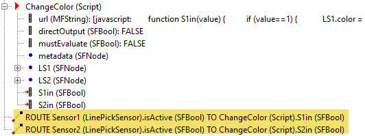 ROUTE узлы используют логику, определенную в Script вызываемый узел ChangeColor.