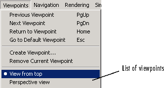 Управление точками обзора и их навигация осуществляется из строки меню, панели инструментов, панели навигации и клавиатуры. В частности, можно