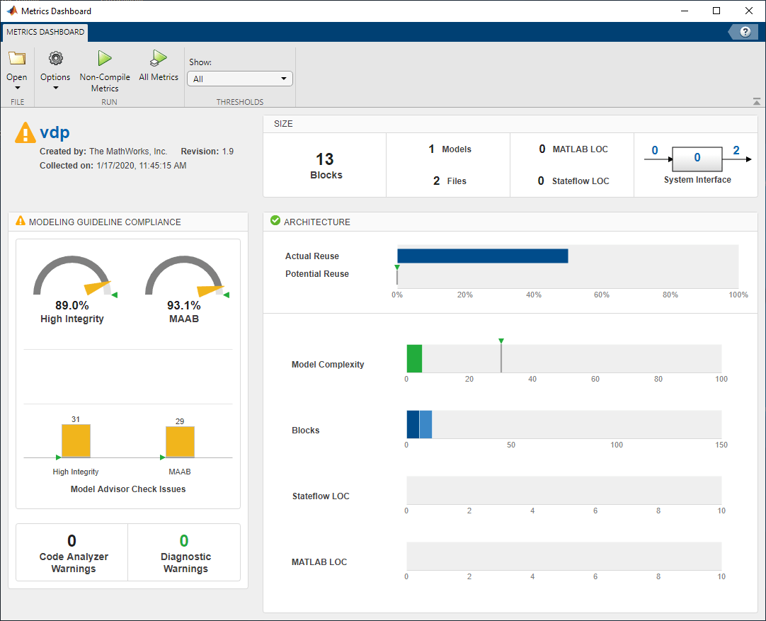| Диагностические предупреждения | Счетчик диагностических предупреждений Simulink (mathworks.metrics.DiagnosticWarningsCount) |
