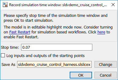 Чтобы включить быстрый перезапуск, в окне Время моделирования записи щелкните ссылку здесь.