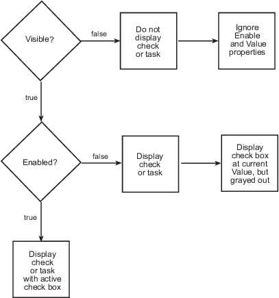 На следующей диаграмме показано, как Visible, Enable, и Value свойства взаимодействуют.