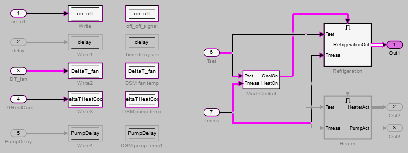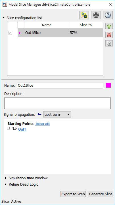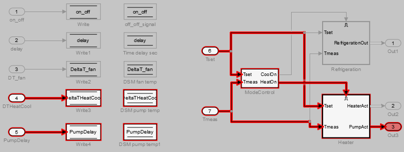 Большие модели часто содержат множество уровней иерархии, сложных сигналов и логики сложных режимов. Можно использовать инструмент «Срез модели», чтобы понять, какие части модели являются значимыми для определенного поведения. В этом примере показано, как использовать модель Slicer для изучения поведения sldvSliceClimateControlExample модель. Сначала необходимо выбрать интересующую область, а затем выделить связанные блоки в модели. В этом примере выполняется трассировка путей зависимостей в восходящем направлении Out1 чтобы выделить, какие части модели влияют на ее поведение.