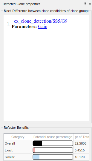 Изменение значения параметра усиления с A кому B и нажмите кнопку Найти клоны. Это реклассифицирует Similar Clone Group 1 кому Exact Clone Group 2 потому что вы устранили разницу в подсистемах и преобразовали ее в точный клон.