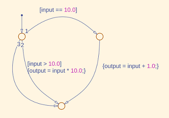 Когда условие для перехода 1 или 2 является истинным, поток управления следует по переходному пути 1 и 2 соответственно и переходит в конечный переход. Когда условия для перехода 1 и 2 являются ложными, поток управления следует по пути перехода 3 и переходит в конечный переход. Для каждого перехода существует определенный путь. Нет непредсказуемых прыжков, пропуска или раннего выхода.