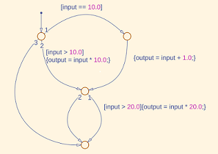 Поток управления в диаграмме Stateflow - это порядок выполнения действий состояния и перехода, когда диаграмма активна. Действия состояния и перехода - это инструкции, которые записываются внутри состояния или рядом с переходом, чтобы определить поведение диаграммы Stateflow во время моделирования. Для управления порядком выполнения действий можно использовать логику принятия решений, закольцовывания и ветвления. В структурированном потоке управления порядок выполнения действий предсказуем и специфичен. В неструктурированном потоке управления порядок выполнения действий непредсказуем. Непредсказуемость возникает из-за использования непредсказуемых переходов к меткам или адресам команд, которые определяются во время выполнения. В результате поток управления может: