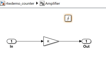 Открыть пример модели rtwdemo_counter путем ввода имени модели в окне команд.
