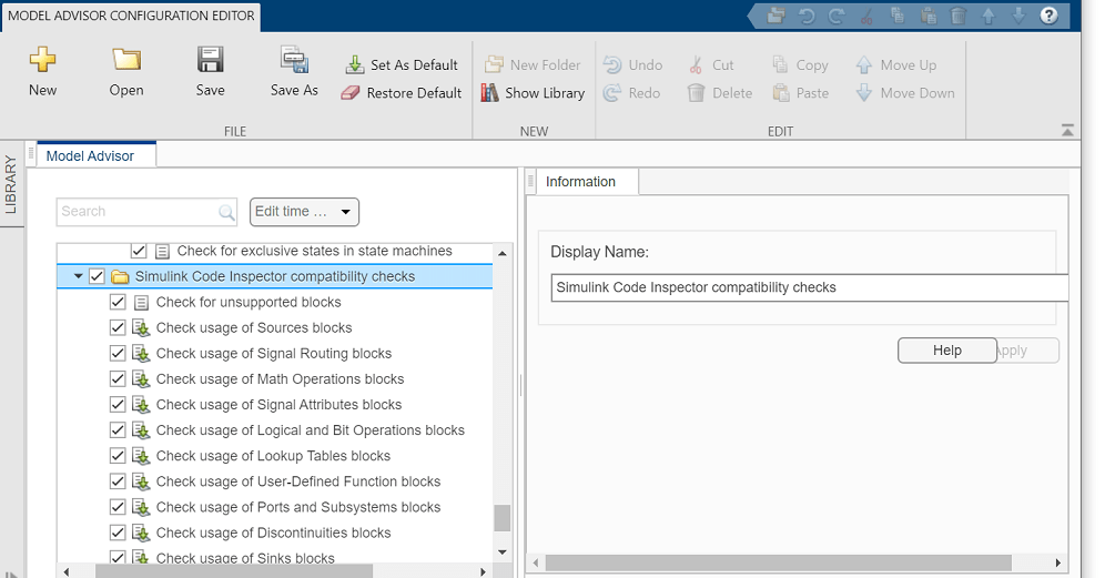 Чтобы использовать проверку времени редактирования для проверки совместимости модели с Simulink Code Inspector при редактировании, выполните следующие действия.