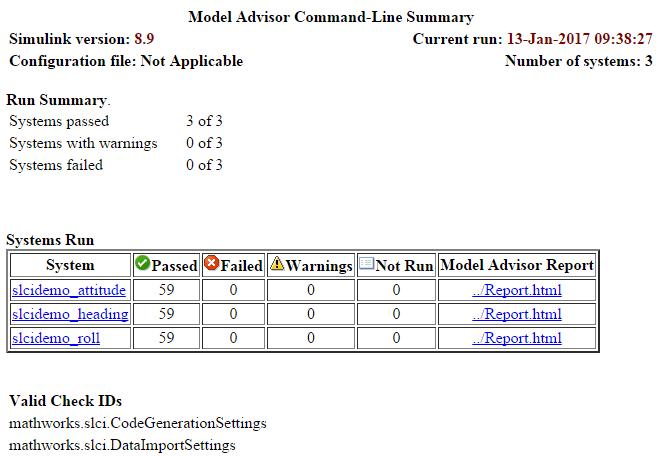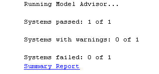 Этот HTML-отчет также связан с результатами командного окна. Он сохраняется как файл summaryReport.html во вложенной папке /slprj/modeladvisor в текущей рабочей папке.