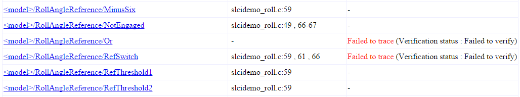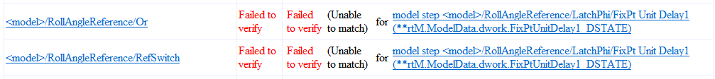 Чтобы показать неудачный результат, в этом примере в созданный код вставляется преднамеренная ошибка. Блок логического оператора внутри RollAngleReference подсистема изменяется в сформированном коде от операции ИЛИ (||к операции И (&&), используя функцию примера утилиты slcidemo_modifycode.