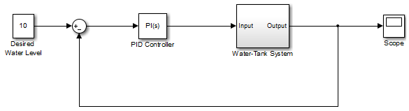 Модель Simulink ®watertank включает в себя установку нелинейной системы водоемов и ПИ-контроллер в одноконтурной системе обратной связи.