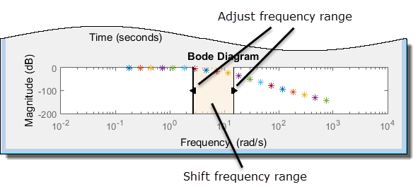 Используйте график Боде (Bode) для анализа частотной характеристики. Если частотный отклик не соответствует динамике системы, см. раздел Устранение неполадок при оценке частотного отклика для получения информации о возможных причинах и решениях. При устранении неполадок можно использовать элементы управления графика Боде для просмотра временной реакции на проблемных частотах.