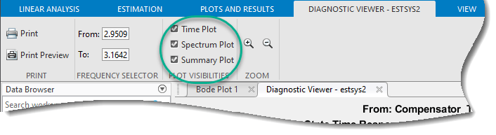 На вкладке Средство просмотра диагностики (Diagnostic Viewer) в разделе Видимость графика (Plot Visibilities) выберите графики, которые требуется просмотреть.