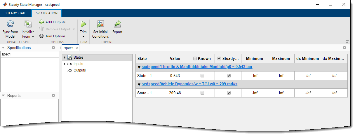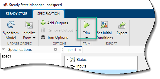 Чтобы найти рабочую точку для модели Simulink, можно в интерактивном режиме обрезать модель с помощью Диспетчера устойчивого состояния (Steady State Manager), как показано в этом примере.