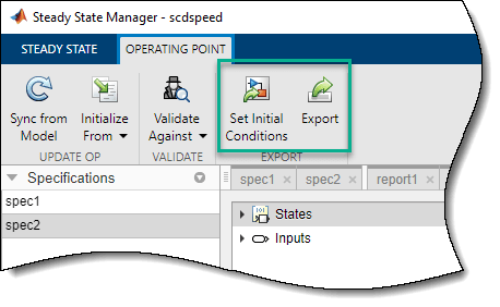 Дополнительные сведения о настройке начальных условий модели и моделировании модели в определенной рабочей точке см. в разделе Моделирование модели моделирования в определенной рабочей точке.