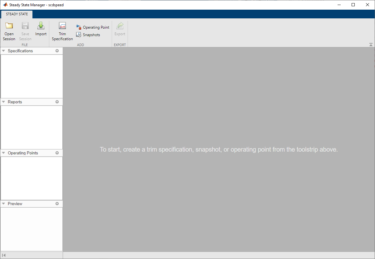 Чтобы открыть Диспетчер устойчивого состояния (Steady State Manager), в окне модели Simulink в галерее Apps щелкните Диспетчер устойчивого состояния (Steady State Manager).