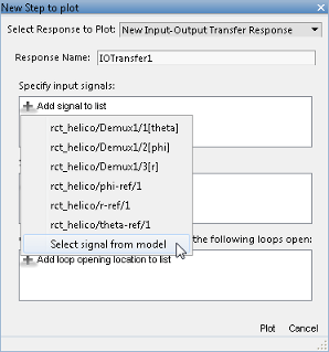 Если сигнал, который вы хотите обозначить как ввод ступенчатого ответа, находится в списке, щелкните сигнал, чтобы добавить его к входам ступенчатого ответа. Если сигнал, который требуется обозначить, не отображается и выполняется настройка модели Simulink ®, щелкните Выбрать сигнал из модели (Select signal from model ).