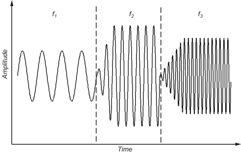 При оценке частотной характеристики синестрименный сигнал состоит из синусоидальных волн с изменяющимися частотами, применяемых друг за другом. Каждая частота возбуждает систему в течение некоторого периода времени.