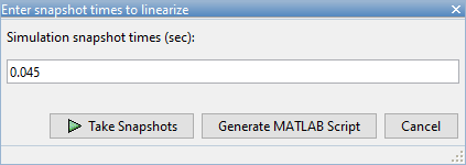 В диалоговом окне Ввод времени снимка для линеаризации в поле Время снимка моделирования введите 0.045, что является достаточным временем для перехода системы с замкнутым контуром в устойчивое состояние.