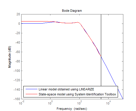 Используйте программное обеспечение System Identification Toolbox™ для оценки модели пространства состояния пятого порядка. Сравните результаты аналитической линеаризации и модель состояния-пространства: