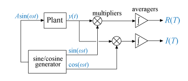 По мере увеличения времени усреднения Т вклад компонентов в y (t) на частотах, отличных от λ, переходит в ноль. R (T) и I (T) становятся постоянными и могут быть использованы для вычисления частотной характеристики установки при λ. Для получения дополнительной информации см. [1].
