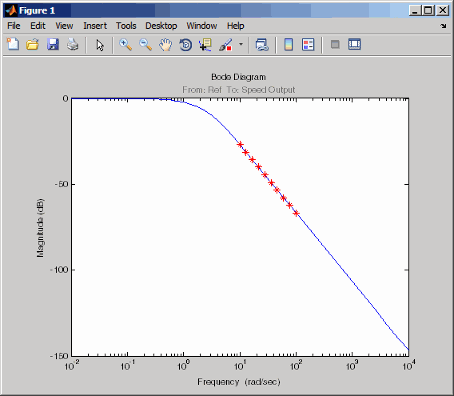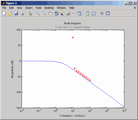 sys = linearize(mdl,io); bodemag(sys,sysest,'r*')