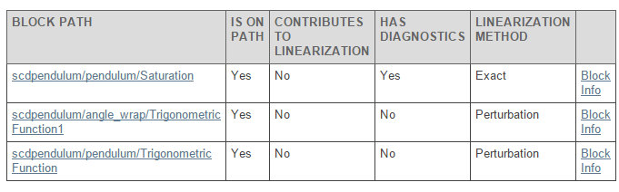 Чтобы просмотреть подробную диагностическую информацию для блока в таблице, в соответствующей строке щелкните Информация о блоке (Block Info). Для устранения неполадок линеаризации блока используйте подробную диагностическую информацию. Дополнительные сведения см. в разделе Устранение неполадок линеаризации блоков.