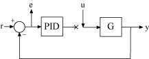 При импорте данных ответа PID-тюнер предполагает, что измеренные данные представляют установку, подключенную к PID-контроллеру в цикле отрицательной обратной связи. Другими словами, PID-тюнер предполагает следующую структуру системы. PID-тюнер предполагает, что вы ввели входной сигнал в u и измерил отклик системы на y, как показано.