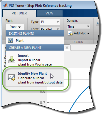 В PID Tuner на вкладке PID Tuner в меню Plant выберите Identify New Plant.