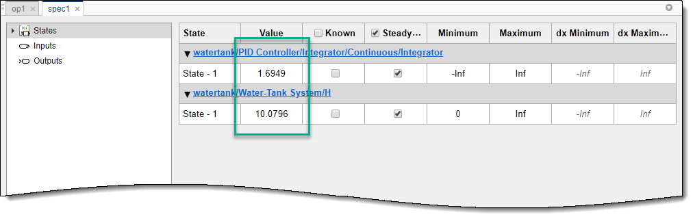 Если известно приблизительное время, когда модель достигает окрестности установившейся рабочей точки, можно использовать моделирование, чтобы получить значения состояния для использования в качестве начальных условий численной оптимизации.