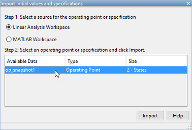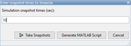 В окне «Линеаризатор модели» в раскрывающемся списке «Рабочая точка» щелкните Take Simulation Snapshot.