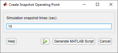 В диалоговом окне «Ввод времени снимка для линеаризации» введите 10 в поле Simulation snapshot time для извлечения рабочей точки в это время моделирования.