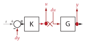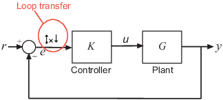 Функция передачи контура в точке представляет собой функцию передачи с разомкнутым контуром от точки к точке от аддитивного возмущения в точке к измерению в той же точке.