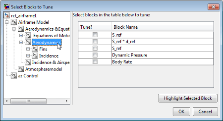 Чтобы выбрать блоки модели Simulink ® для настройки в настройщике системы управления: