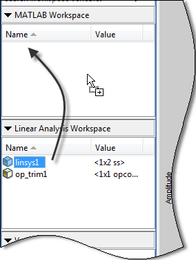 Перетащите массив из рабочей области линейного анализа в рабочую область MATLAB.