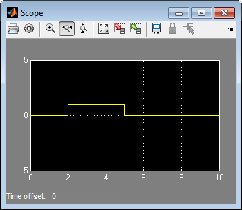 Выходные данные области во время моделирования, отображающие возвращаемое значение относительно времени выборки, подтверждают пересекающиеся прямоугольники для времени выборки 2, 3, и 4 .